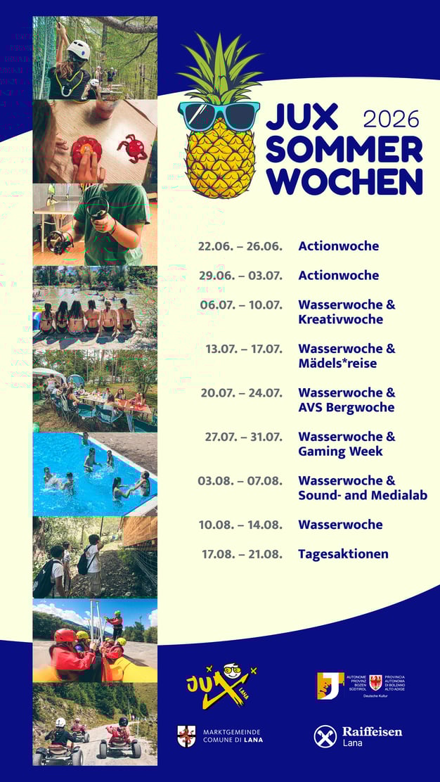 Bei Fragen, Wünschen oder sonstigen Anliegen zum Thema Sommer gerne an Chris 334 3844796 | chris@jux.it wenden.